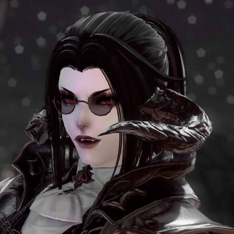 Born from a Viera mother and and Au'ra father, Requiem took the horns and scales from him. But he took one part of his mother that allowed him to live longer than expected. Now a roaming vampire, he seek a prey that he will devour without any mercy. Except if you're interesting enough.